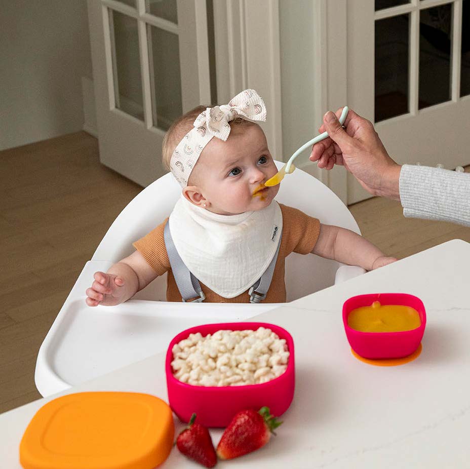 Crafted from platinum, food-grade silicone, our bitty bowls are safe, durable, and easy to clean. Multifunctional and versatile, it is dishwasher, microwave, freezer, and oven safe up to 400°F (200°C) and is available inplayful colors to complement your baby’s purees, finger foods, and meals.