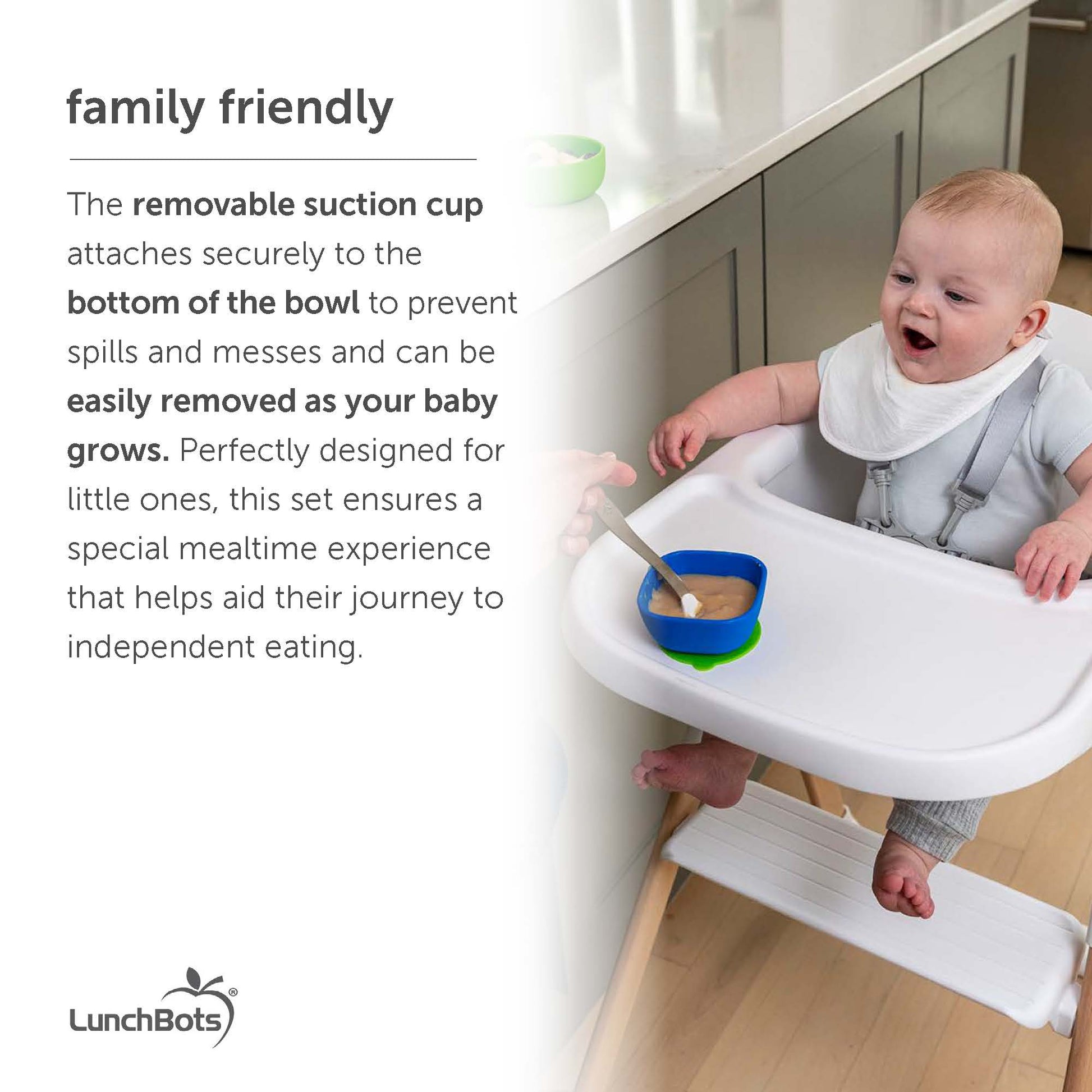 REMOVABLE SUCTION CUP: Attaches securely to the bottom of the bowl, preventing spills and messes during mealtime. As the baby grows, the suction cup can be easily removed, accommodating their increasing independence.
