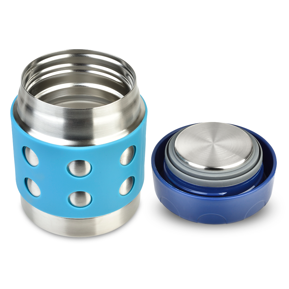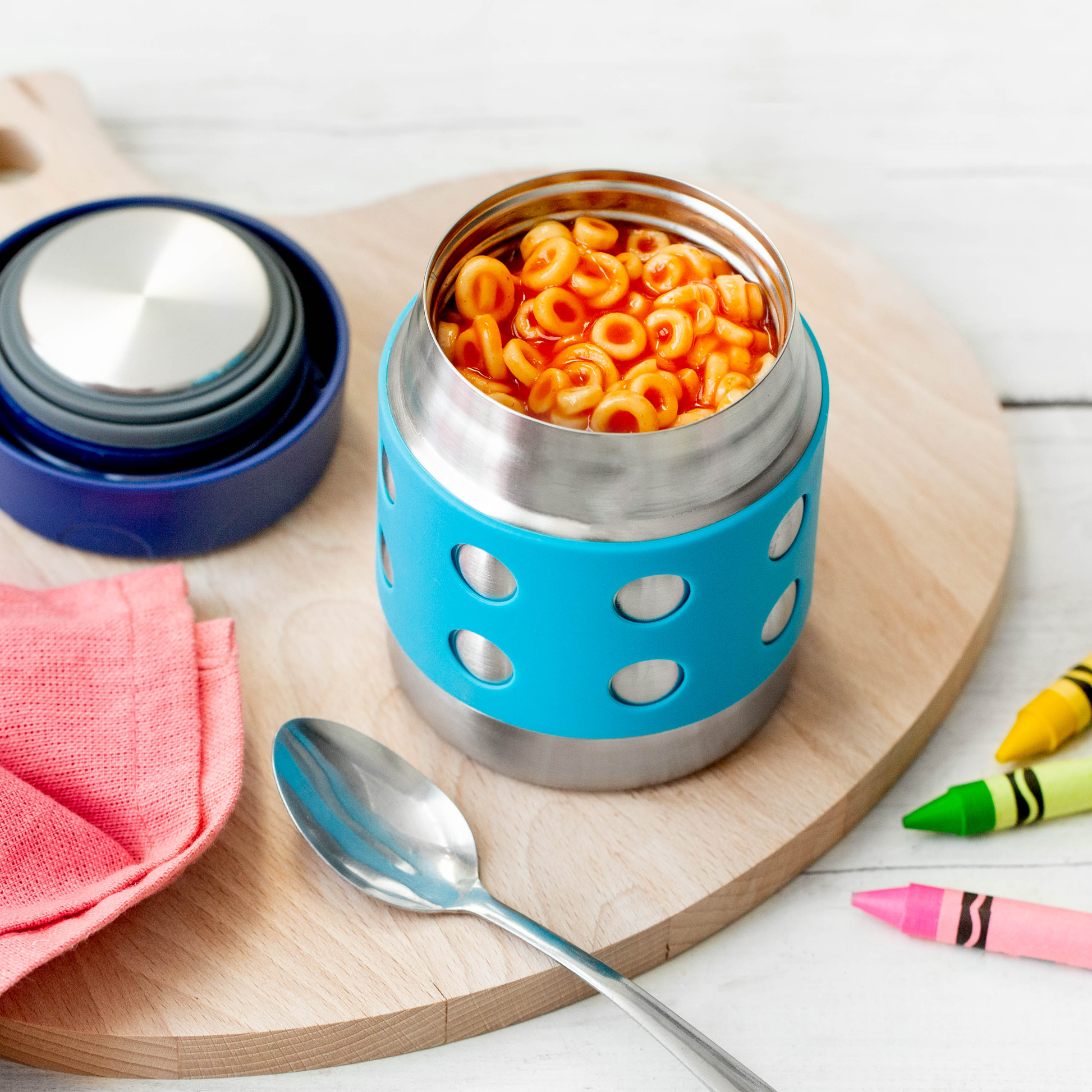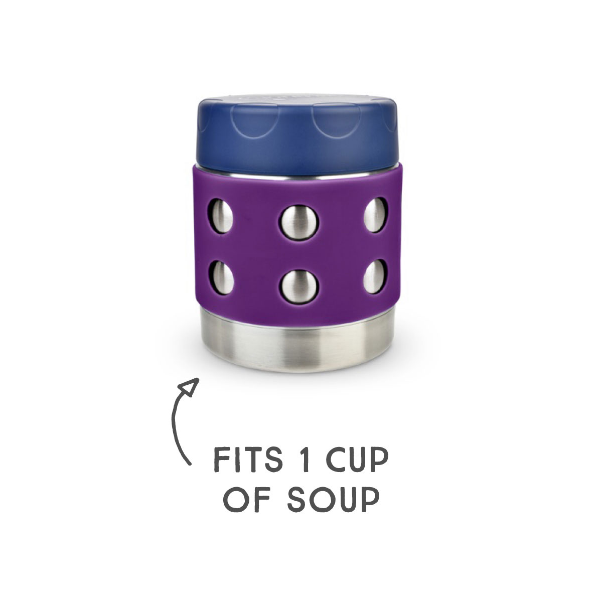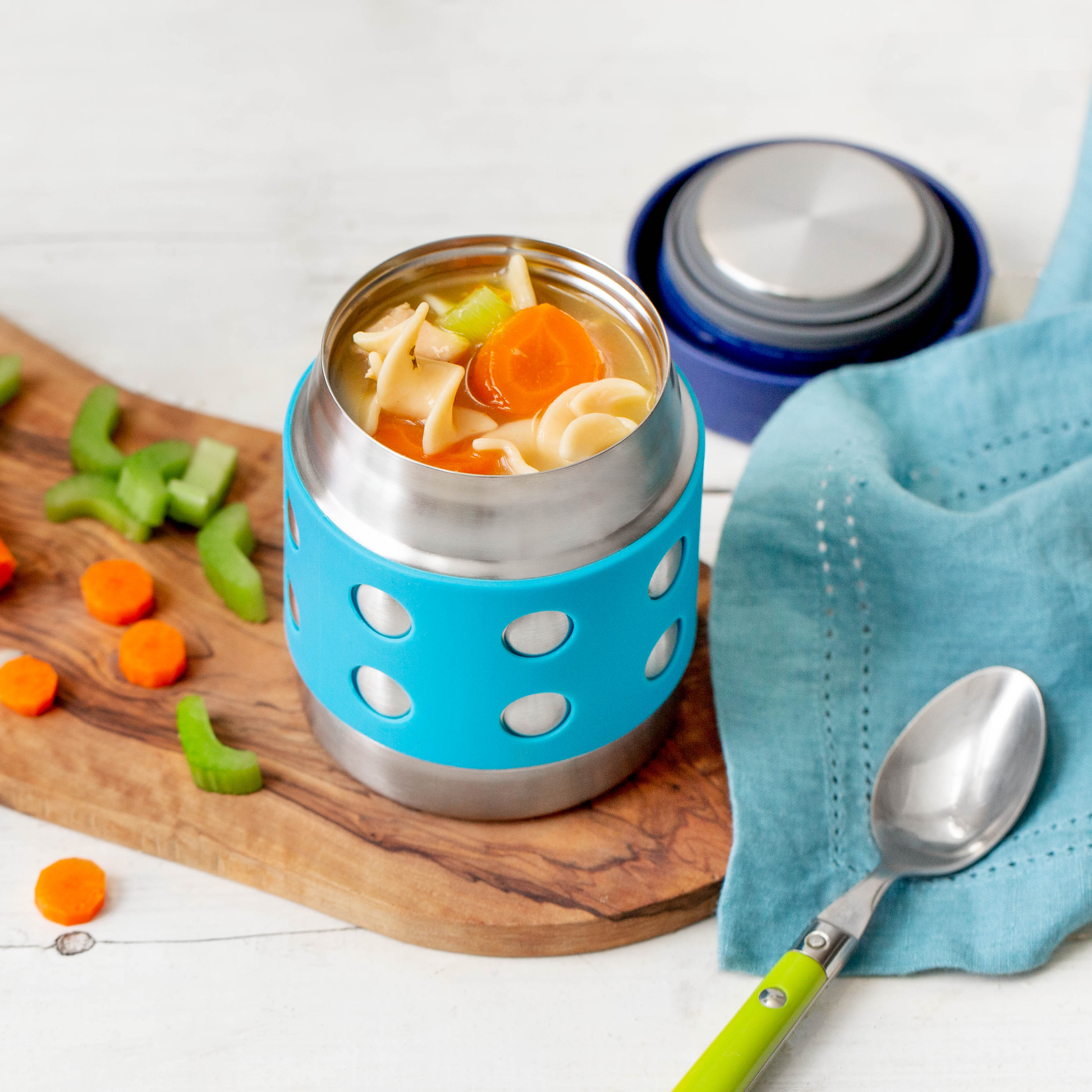 Triple insulated, this 8 oz. Thermal keeps 1 cup of your favorite soup or chili hot until lunchtime! A bright silicone sleeve adds a splash of color and its all-stainless interior means no plastic touches your food. Dishwasher safe.