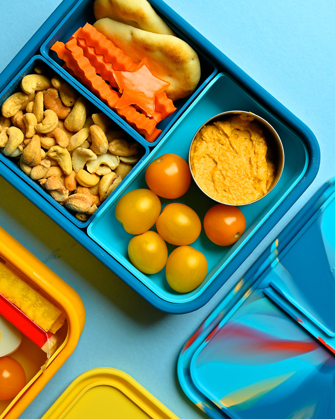 Meet the colorful and customizable bento box made with premium platinum silicone. With removable and interchangeable compartments it’s like 5 bentos in 1!
